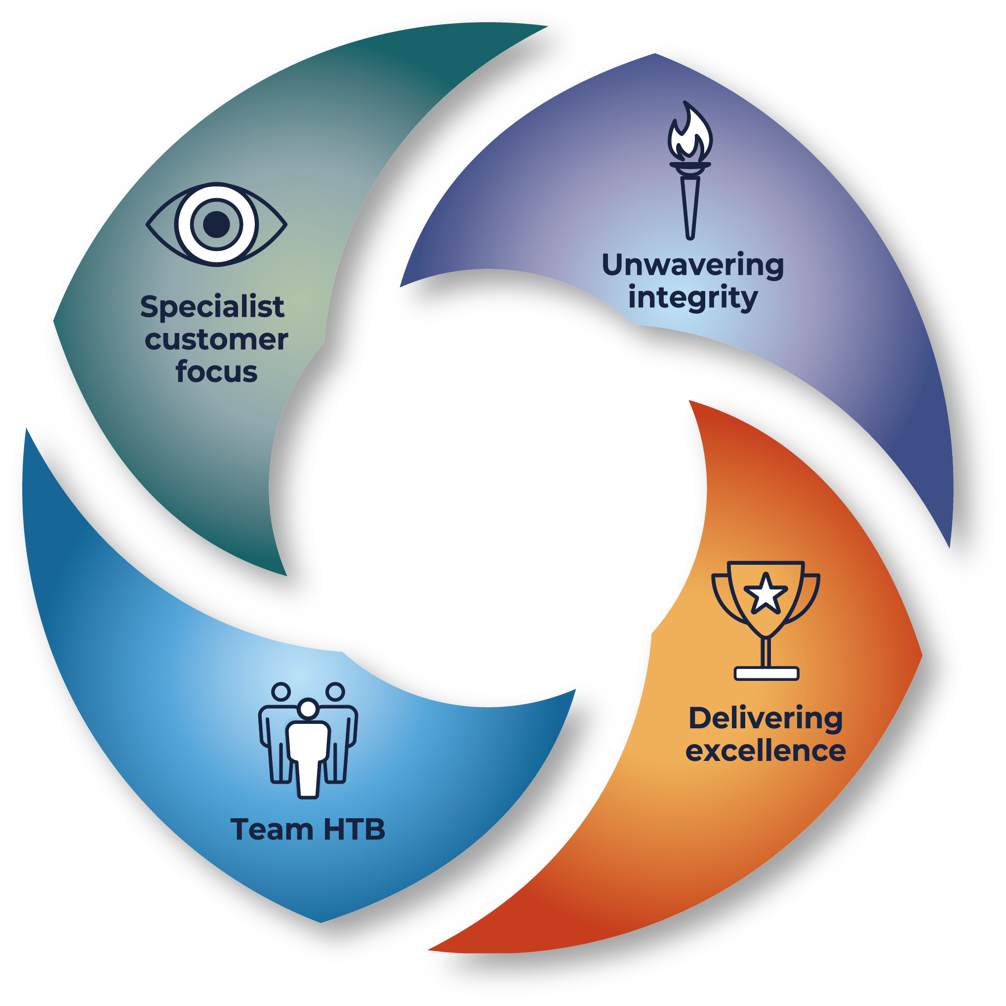 Our values led culture is guided by specialist customer focus, unwavering integrity, delivering excellence, and team HTB.